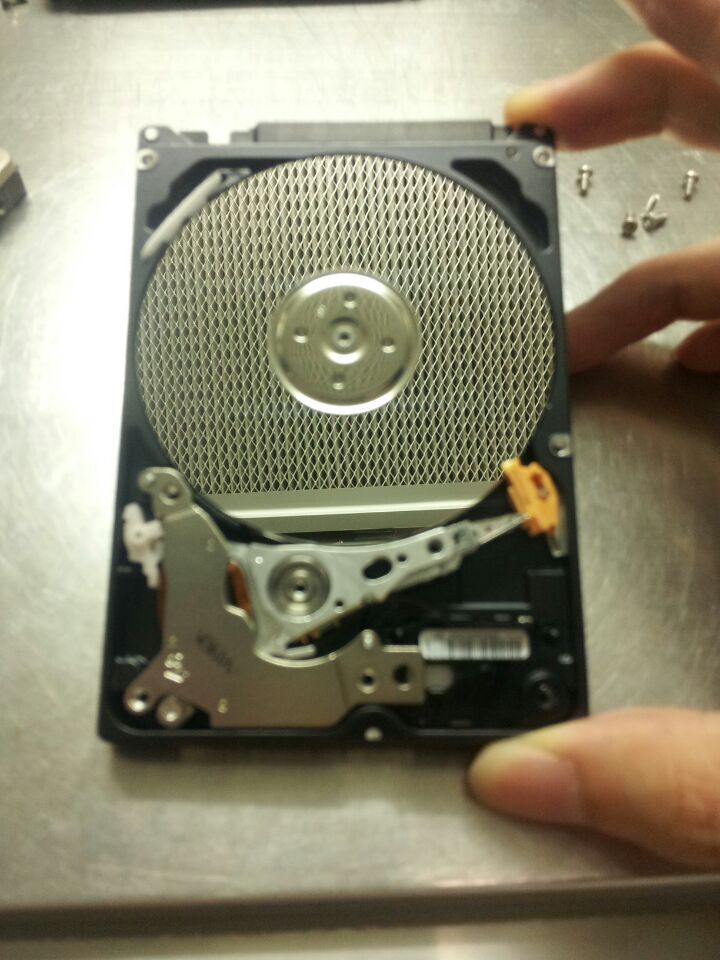| 檢測結(jié)果 | 拿到客戶的移動硬盤后,我們直接開盤使用顯微鏡觀察,移動硬盤是500GB的,有兩個碟片,四個面,有兩個面嚴重劃傷,一個面輕微劃傷,還有一個面沒有損傷,初步評估還可以恢復(fù)50%的數(shù)據(jù)。 |